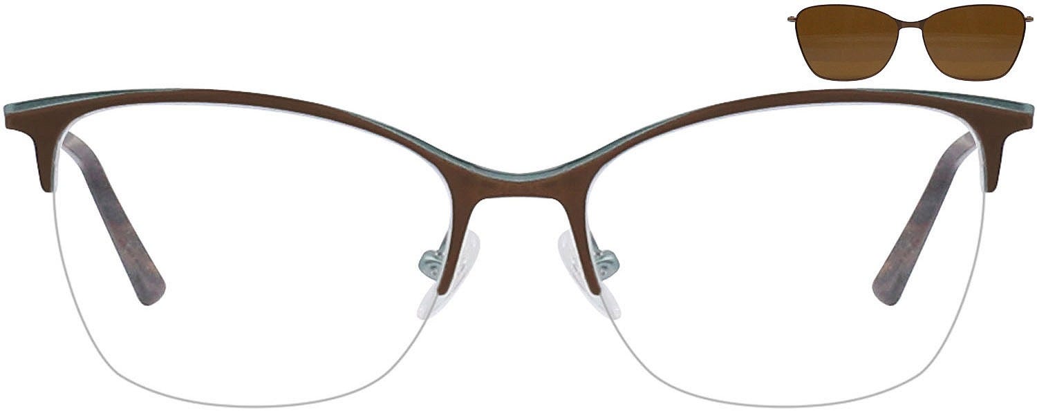 Ashford by Revolution are high-quality, alluring-looking cat-eye frames with a sleek half-rim design. The retro half-rim design of these frames comes with the appealing two-tone look and features cat-eye lenses in a stylized horn-shaped front design along with the dainty temples on the sides. These frames come with the appealing clip-on attachment so you can switch between eyewear and sunwear on the go. The chic finishes make these frames even more eye-catching. These frames are lightweight and comfy thanks to their metal structure and spring hinges. Purchase these glasses at the best prices with the promise of a quality customer experience. These glasses will come packaged in a lovely Goggles4U case.