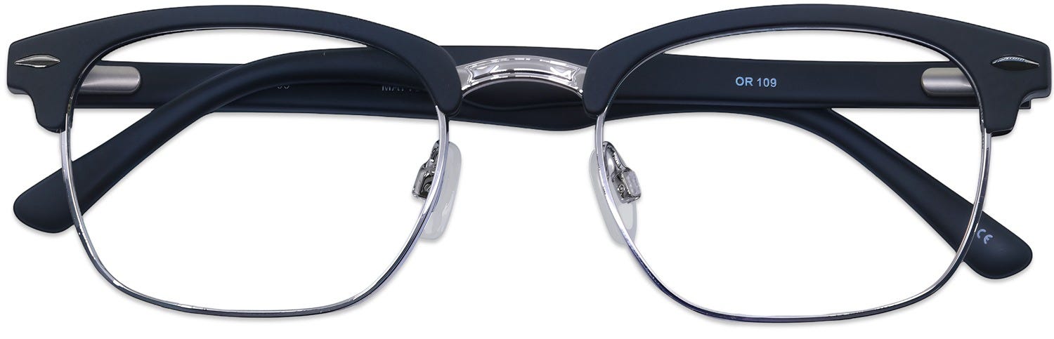 Browline Eyeglasses 185414 are high-quality, alluring-looking frames with a classy browline design. The appealing browline full-rim design of these frames features an alluring brow up front with an enticing nose bridge, sleek lens rims, and appealing flat temples on the sides. These frames boast a classy black-silver finish that makes them look even more eye-catching and refined. These frames are designed with a combination of lightweight TR-90 material and metal and feature spring hinges for a cozy, snug, and comfortable fit. Buy these glasses at the best prices with the promise of a great customer experience.