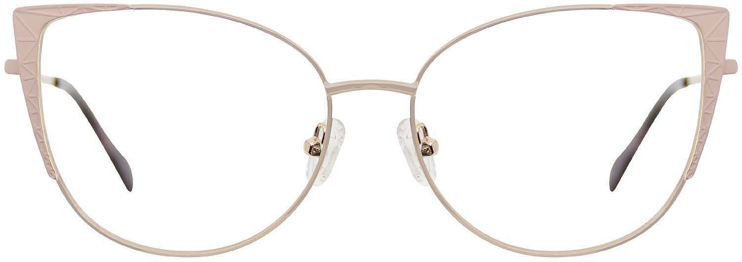 Cat Eye Eyeglasses 157320a are elegant-looking, high quality cat-eye frames that come with a stylized full rim design. These frames feature cat-eye lenses in a bold horn-shaped front design that has alluring borders around the corners and slender temples on the sides. These frames come with the gold-brown making them look even more eye-catching. These metal frames with spring hinges will stay comfy on your face for long term use.