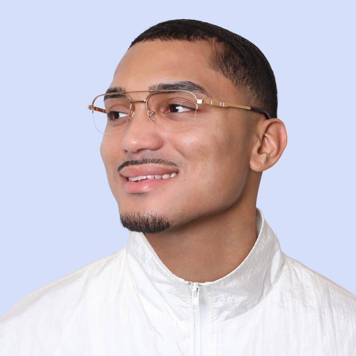 Pilot Eyeglasses 171119-c are highly alluring and elegant-looking frames with a retro half-rim design. The pilot-shaped half-rim design of these frames can allure any outfit you pair them with thanks to the sophisticated aesthetics, like the sleek double nose bridge up front and the stylized temples on the sides. The elegant finishes of these frames allure this look nicely. These frames are designed from lightweight metal and feature spring hinges for a pleasant fit. Add these glasses to your attire at the best prices, with the promise of a pleasant customer experience.