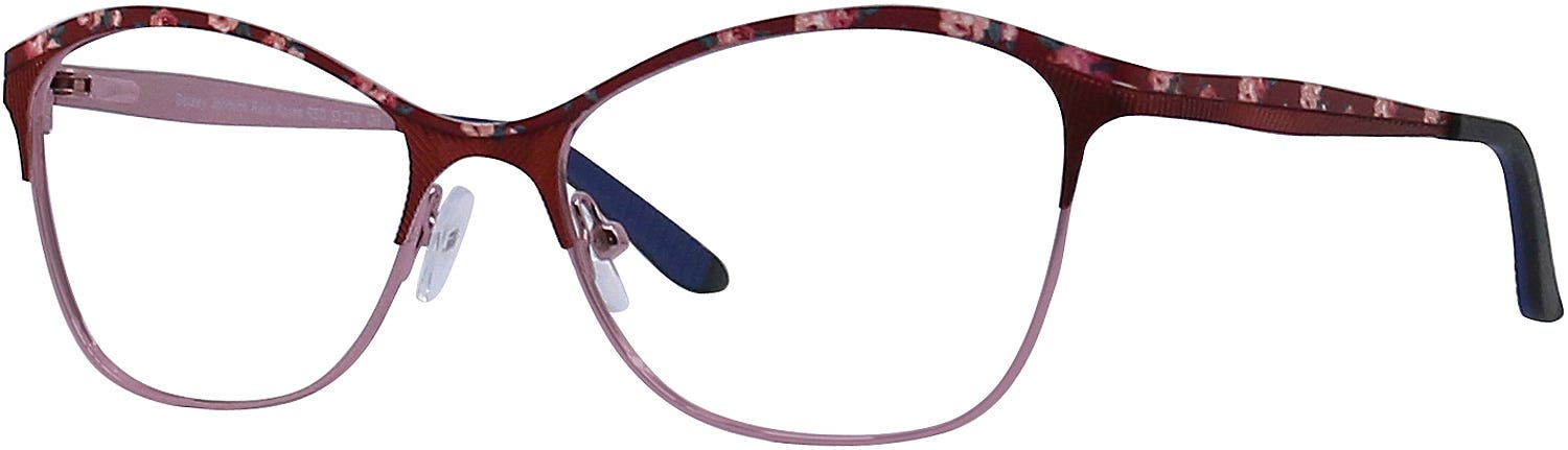 Rain Roses by Betsey Johnson are high-quality, alluring-looking frames with a stunning full-rim design. The appealing cat-eye-shaped lenses on these frames are beautifully complemented by the stylized horn-shaped front design that has enticing lens rims and is joined by the dainty temples on the sides that have chic details. The gorgeous finishes of these frames lend a nice touch of finesse to this captivating look. These frames are designed from lightweight metal and feature spring hinges for a cozy, snug fit. Buy these glasses at the best prices with the promise of a great customer experience. These glasses will come packaged in a lovely Goggles4U case.