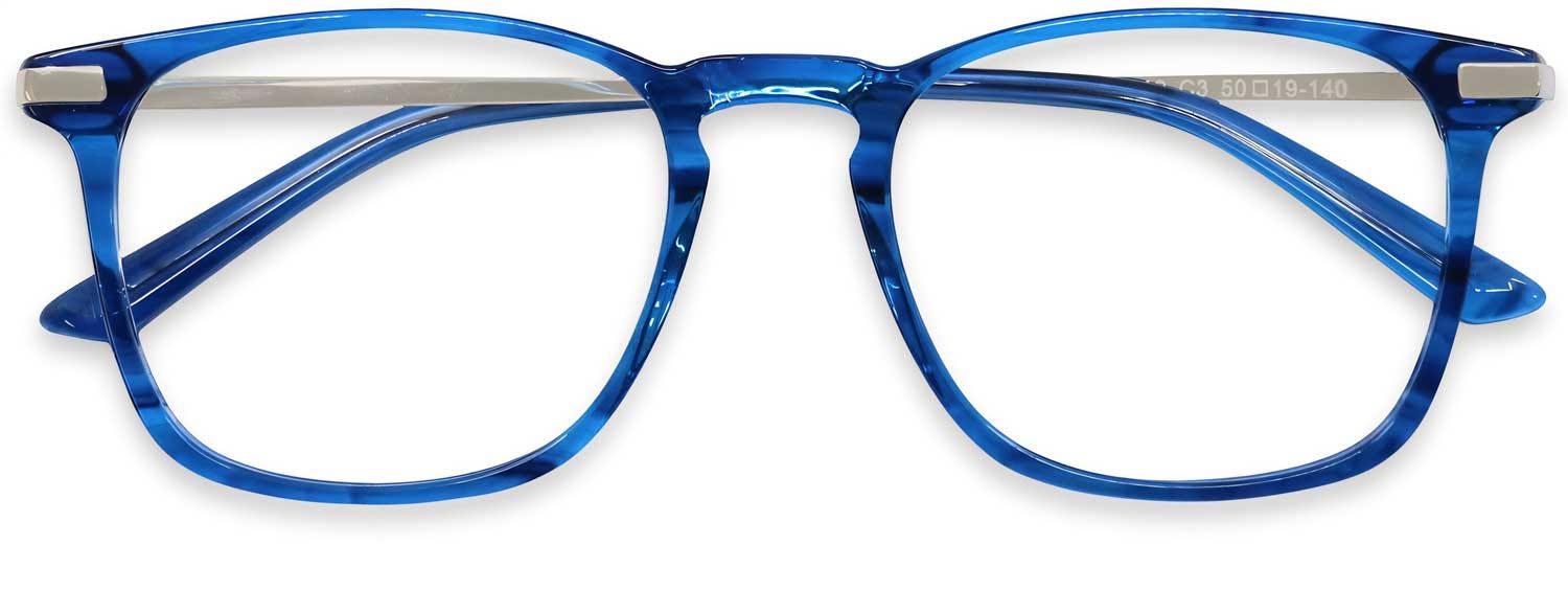 Rectangle Eyeglasses 183111 are highly alluring and elegant-looking rectangle frames with a classy full-rim design. The stylish rectangle lenses on these frames are beautifully complemented by the stylized front design along with the sleek slender temples on the sides. The captivating Blue-Grey finish of these frames lends a nice touch of finesse to their retro look. These frames are designed with the combination of lightweight TR-90 material and metal and feature a keyhole nose bridge to assure a pleasant fit. Add these glasses to your attire at the best prices, with the promise of a pleasant customer experience.