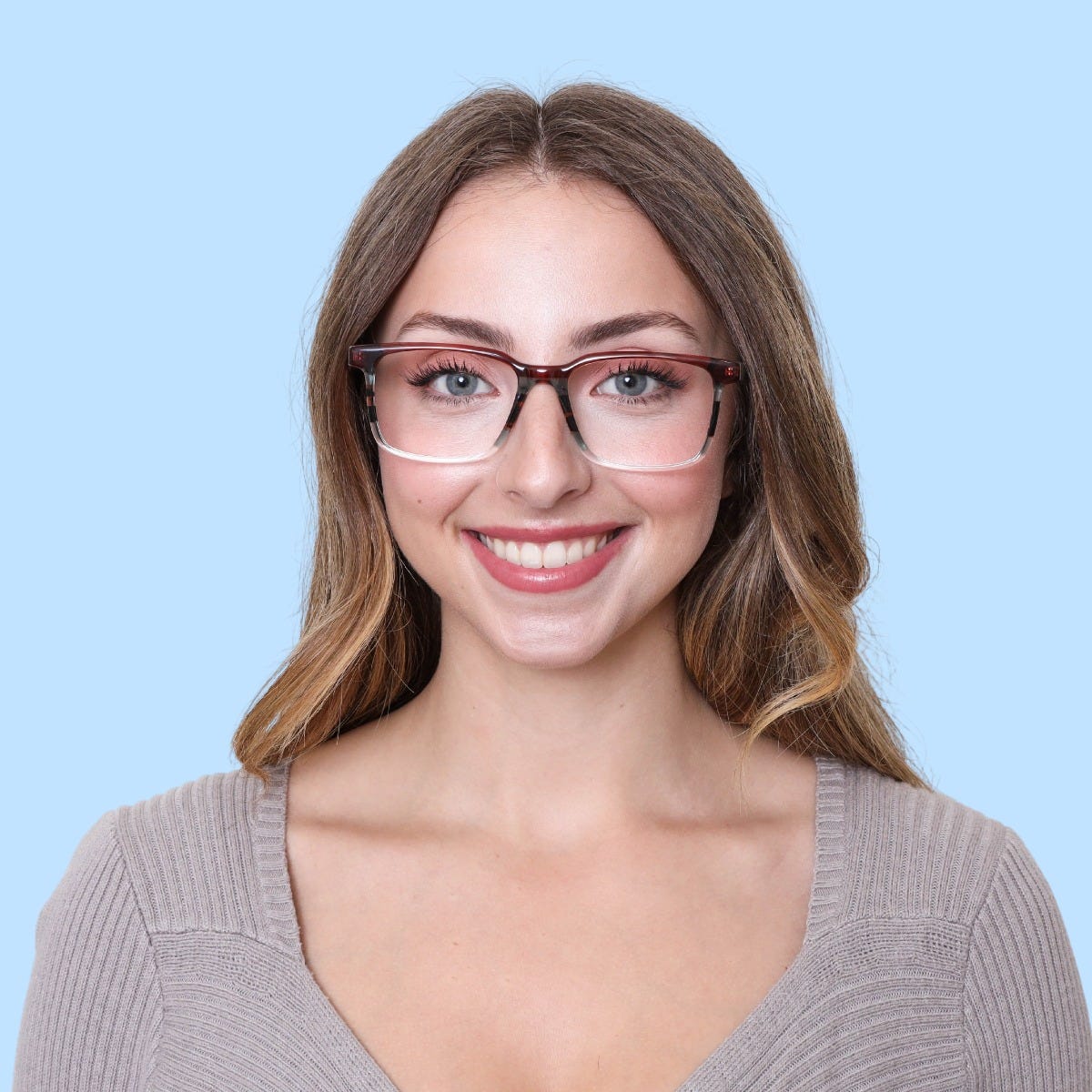 Rectangle Eyeglasses 183168 are stylishly designed, alluring rectangular frames featuring a classy full-rim construction. The sleek rectangular lenses are beautifully complemented by an elegant front design that showcases a stunning two-tone translucent look, paired with dainty flat temples on the sides for a refined touch. The captivating maroon-clear finish enhances their visual appeal, making them even more eye-catching. Crafted from lightweight TR-90 material, these frames ensure lasting comfort, while the spring hinges provide a secure and pleasant fit. Buy these glasses at the best prices with the promise of a great customer experience.