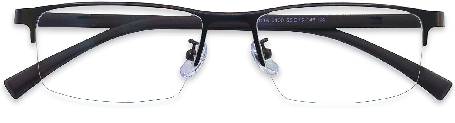 Rectangle Eyeglasses 183642-c are high-quality, alluring rectangle frames with a classy half-rim design. These frames feature stylish rectangle lenses beautifully complemented by an enticing front design and dainty temples on the sides. The appealing finishes add a refined touch of finesse to their retro allure. Crafted from a combination of lightweight metal and TR-90 material, these frames also include spring hinges to ensure a comfortable and pleasant fit. Purchase these glasses at the best prices with the promise of a quality customer experience.