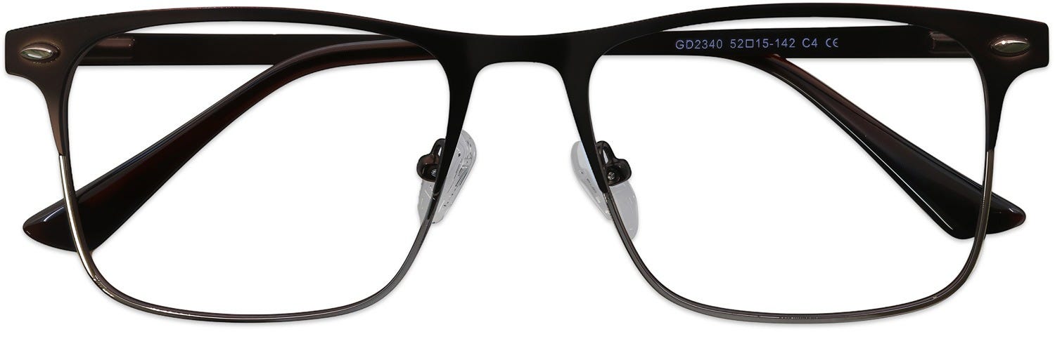 Rectangle Eyeglasses 184901-c are highly alluring and elegant-looking rectangle frames with a classy full-rim design. The stylish rectangle lenses are beautifully complemented by the stylized front design, featuring alluring stud rivets and enticing lens rims, and are joined by sleek, slender temples on the sides. These frames boast classy finishes that make them look even more eye-catching. Designed from lightweight metal, they feature spring hinges for a pleasant and comfortable fit. Buy these glasses at the best prices with the promise of a great customer experience.