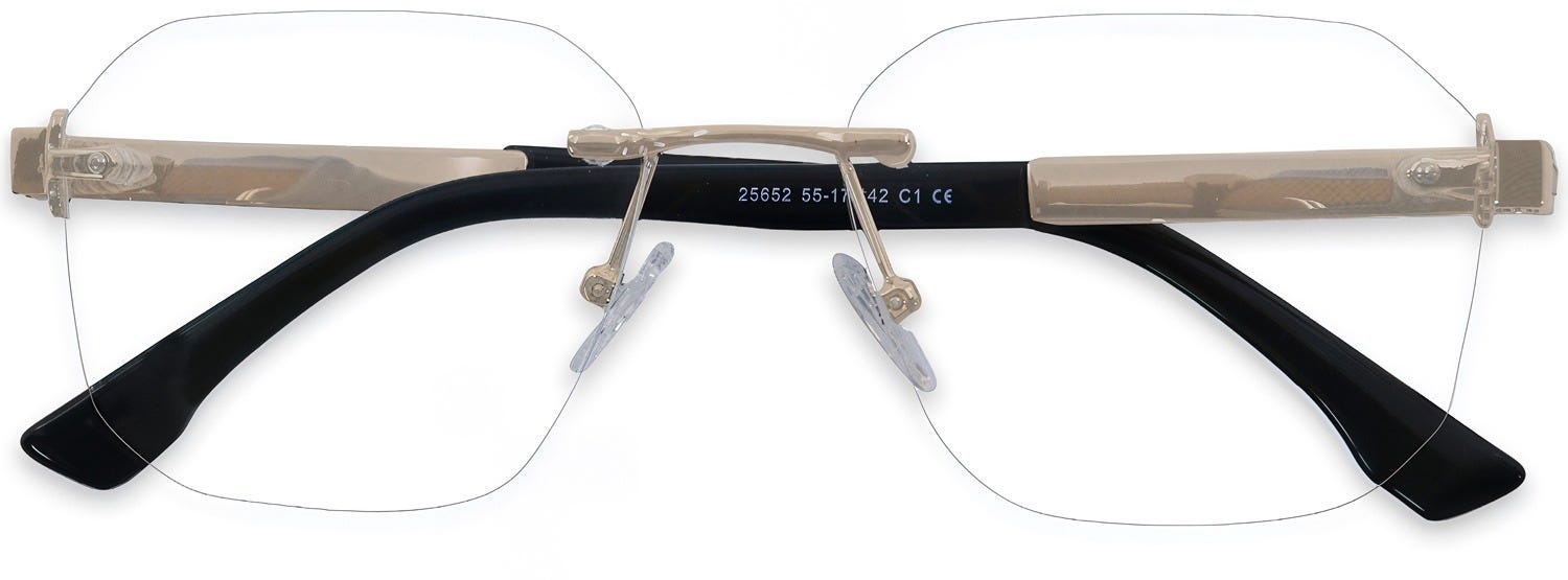 Rimless Eyeglasses 184998-c are highly alluring, elegant rectangle frames with a classy rimless design. The stylish rectangle lenses are beautifully complemented by the retro aesthetics of this rimless design, featuring a sleek nose bridge and appealing wide temples on the sides. These frames boast classy finishes that add a touch of finesse to their retro allure. Crafted from lightweight metal, they ensure comfortable all-day wear. Add these glasses to your attire at the best prices, with the promise of a pleasant customer experience.