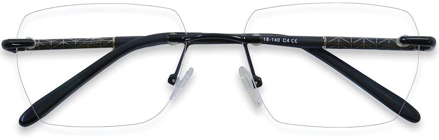 Rimless Eyeglasses 185104 are highly alluring and elegant rectangle frames with a classy rimless design. The stylish rectangle lenses are beautifully complemented by the retro aesthetics of the rimless frame, featuring an enticing nose bridge and appealing temples on the sides with intricate detailing. The classy black finish adds a refined touch of finesse to their retro allure. Crafted from a combination of lightweight metal and TR-90 material, these frames feature spring hinges for a comfortable and pleasant fit. Purchase these glasses at the best prices with the promise of a quality customer experience.