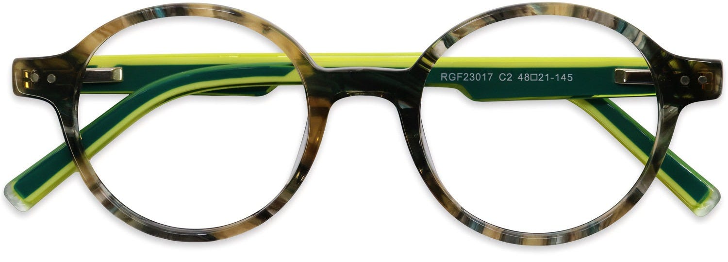 Round Eyeglasses 182277-c are highly alluring and elegant-looking frames with a captivating full-rim design. These frames feature stylish rounded lenses in a stylized front design that has enticing stud rivets embedded around the corners and is joined by the stylized wide temples on the sides. The captivating finishes of these frames lend a nice touch of finesse to this captivating look and make them even more eye-catching. These frames are designed from lightweight TR-90 material, and spring hinges are there to assure a pleasant fit. Purchase these glasses at the best prices with the promise of a quality customer experience.