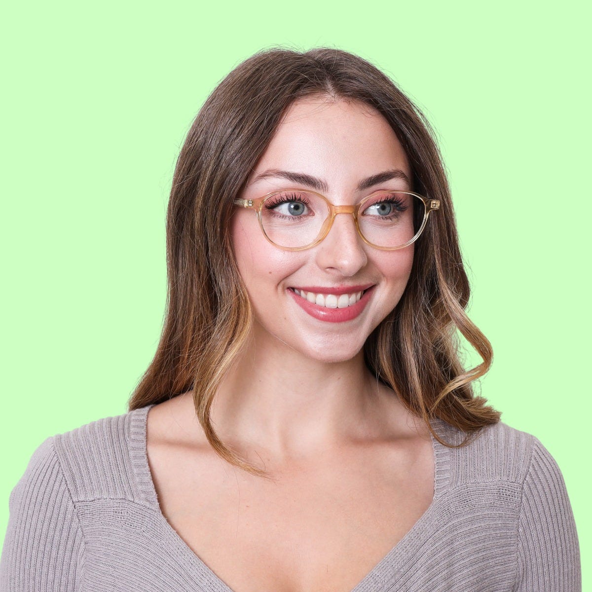 Round Eyeglasses 182318-c are high-quality, elegant-looking frames with a stunning full-rim design. The appealing rounded lenses on these frames are beautifully complemented by the dainty front design along with the appealing flat temples on the sides. The chic finishes of these frames blend beautifully with their lovely translucent allure for a more refined look. These frames are designed from lightweight TR-90 material and feature spring hinges to assure a cozy, snug fit. Purchase these glasses at the best prices with the promise of a quality customer experience.