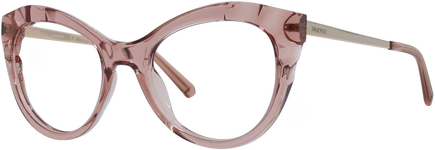 Swarovski SK1551 are stylish, elegant, and bold looking frames with a stunning full rim design. The alluring cat-eye lenses on these frames are beautifully complemented by the beautifully carved horn-shaped front design and the sleek, seamless flat temples on the sides. The appealing pink-gold finish of these frames blends beautifully with this enticing design and makes them look even more eye-catching. These frames are designed with a combination of lightweight metal and TR-90 material. Purchase these glasses at the best prices with the promise of a quality customer experience. These glasses will come packaged in a lovely Goggles4U case.