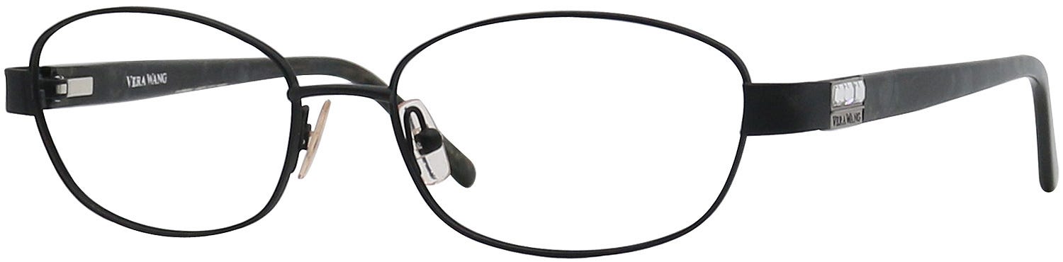 Vera Wang V330 are high quality elegant looking rectangle frames with a classy full rim design. The stylish rectangle lenses on these frames are nicely complemented by the retro looks of this sleek full rim that has a sleek nose bridge up front and the stylized flat temples on the sides with captivating rhinestones embedded around the hinges. These frames come with the enticing black finish that emphasizes the allure of these frames nicely. Add these glasses to your attire at the best prices with the promise of a pleasant customer experience. These glasses will come packaged in a lovely Goggles4U case.
